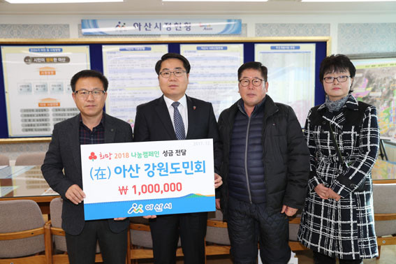 | | ¡è¡è ¡ã(»çÁø ¿ÞÂʺÎÅÍ) ±è¸í¿Á °¿øµµ¹Îȸ »ç¹«ÃÑÀå, ¿À¼¼Çö ¾Æ»ê½Ã ºÎ½ÃÀå, õ¿ø±â °í¹®, ½Å»ó¼ø Ãѹ« ¼º±ÝÀü´Þ ±â³äÃÔ¿µ | ¨Ï ¿Â¾ç½Å¹® | | (î¤)¾Æ»ê °¿øµµ¹Îȸ(ȸÀå ±èÅÂÁß)Àº Áö³ 12¿ù 26ÀÏ ¾Æ»ê½Ã(½ÃÀå º¹±â¿Õ)¿¡ ¡®Èñ¸Á2018³ª´®Ä·ÆäÀΡ¯ ÀÌ¿ô»ç¶û ¼º±Ý 100¸¸ ¿øÀ» Àü´ÞÇß´Ù.
