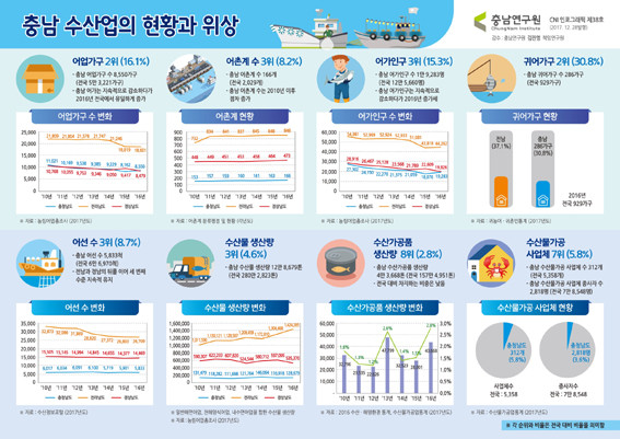 12¿ù 28ÀÏ Ãæ³²¿¬±¸¿øÀº ¡®Ãæ³² ¼ö»ê¾÷ ÇöȲ°ú À§»ó¡¯ ÀÎÆ÷±×·¡ÇÈ¿¡¼ ¡°µµ³» ¼ö»ê±Ô¸ð(¾î¾÷°¡±¸, ¾îÃÌ°è ¼ö, ±Í¾î°¡±¸, ¼ö»ê¹° »ý»ê·® µî)´Â Àü±¹¿¡¼ 2~3À§¸¦ À¯ÁöÇØ ¾çÈ£ÇÑ Æí¡±À̶ó°í ¹àÇû´Ù.