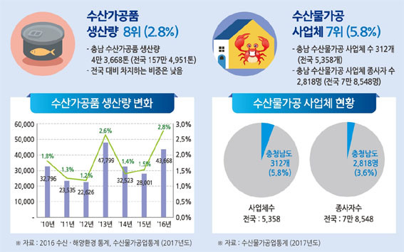 Ãæ³²¿¬±¸¿ø ±èÁø¿µ Ã¥ÀÓ¿¬±¸¿øÀº ¡°µµ³» ¼ö»ê¹° »ý»ê·®Àº Àü±¹ 3À§ ¼öÁØ(4.6%)¸¦ Â÷ÁöÇϰí ÀÖÀ¸³ª, ¼ö»ê°¡°øÇ° »ý»ê·®Àº Àü±¹¿¡¼ 8À§(2.8%), ¼ö»ê¹°°¡°ø »ç¾÷ü´Â 7À§(5.8%)·Î ³ªÅ¸³µ´Ù¡±¸ç ¡°¼ö»ê¾÷ºÐ¾ß¿¡¼ °íºÎ°¡°¡Ä¡ âÃâÀ» À§ÇØ ¼ö»ê°¡°ø»ê¾÷ ±â¹ÝÀ» È®ÃæÇØ¾ß ÇÑ´Ù¡±°í °Á¶Çß´Ù.