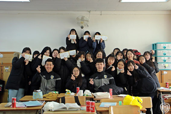 »õÇØ ù Áö¿ª¹ÐÂø Ȱµ¿¿¡´Â ÃÖ±Ù »õ½Å¶ûÀÌ µÈ Ȳµµ¿¬°ú Á¤¼º¹ÎÀÌ ¹æ¹®ÇØ ¾Æ»ê¹«±ÃÈÇÁ·ÎÃ౸´Ü¿¡ ´ëÇÑ ÄûÁî¿Í ¼±¼ö¿¡ ´ëÇÑ ÁúÀÇÀÀ´ä½Ã°£À» °¡Á³´Âµ¥ ¿©ÀÚÄ£±¸°¡ ÀֳĴ ÇлýµéÀÇ Áþ±ÄÀº Áú¹®¿¡ µÎ ¼±¼ö ¸ðµÎ ¡°¿©ÀÚÄ£±¸´Â ¾øÁö¸¸ ¾Æ³»´Â ÀÖ´Ù.¡±¶ó°í ¼¾½º ÀÖ°Ô ±âÈ¥ »ç½ÇÀ» ¾Ë·Á ±³½ÇÀ» ¿ôÀ½¹Ù´Ù·Î µÚµ¤¾ú´Ù.