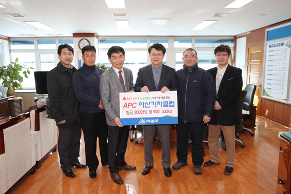 | | ¡è¡è ¡ãº¹±â¿Õ ½ÃÀå°ú APC±âÀÚŬ·´ ȸ¿øµéÀÌ ±â³äÃÔ¿µÀ» Çϰí ÀÖ´Ù. (»çÁø ¿ÞÂʺÎÅÍ) À̴뼺 ±âÀÚ(¾Æ»êÅõµ¥ÀÌ), ÀÌÁ¤Å ±âÀÚ(ºê¸´Áö°æÁ¦), ¸®·®ÁÖ È¸Àå(´ëÀüÅõµ¥ÀÌ), º¹±â¿Õ ¾Æ»ê½ÃÀå, À̽ÅÇÐ ±âÀÚ (¾Æ½Ã¾ÆÅõµ¥ÀÌ), ±è±â¹ü ±âÀÚ (Áß¾Ó¸ÅÀÏ) | ¨Ï ¿Â¾ç½Å¹® | | APC¾Æ»ê±âÀÚŬ·´(ȸÀå ¸®·®ÁÖ)Àº 1¿ù 9ÀÏ ¾Æ»ê½Ã(½ÃÀå º¹±â¿Õ)¸¦ ¹æ¹®ÇØ Èñ¸Á2018³ª´®Ä·ÆäÀÎ ¼º±Ý 300¸¸ ¿ø°ú ¹é¹Ì 500kgÀ» Àü´ÞÇß´Ù.