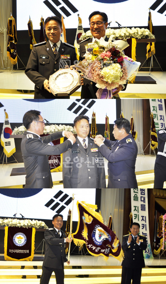 | | ¡è¡è <À§> ¹Ú³ë½Ä ¿¬ÇÕ´ëÀåÀÌ ¾ÈÀçÁØ ÀÌÀÓ´ëÀå¿¡°Ô ÀçÁ÷±â³äÆÐ¸¦ Àü´Þ, <°¡¿îµ¥> ¹Ú³ë½Ä ¿¬ÇÕ´ëÀå¿¡°Ô °ßÀå ¼ö¿©, <¾Æ·¡> ¹Ú³ë½Ä ¿¬ÇÕ´ëÀåÀÌ ¿¬ÇÕ´ë±â¸¦ Àü°¥¹Þ°í ÈûÂ÷°Ô »õ·Î¿î Ãâ¹ßÀ» ¾Ë¸®°í ÀÖ´Ù. | ¨Ï ¿Â¾ç½Å¹® | | ¾Æ»ê½ÃÀÚÀ²¹æ¹ü´ë´Â 1982³â ¿Â¾ç¿ªÀü±âµ¿¼øÂû´ë·Î ⸳ÇÏ¿©, 1994³â ¿¬ÇÕ´ë·Î Ãâ¹ü ¹üÁË¿¹¹æ ÇÕµ¿¼øÂû, À̼ø½Å µ¿»ó Ä£¼ö½Ä, ¼Ò³àüÀü, Àå¾ÖÀÎÇлýüÀü, ½ÅÁ¤È£ º°ºû ÃàÁ¦, ÀºÇ೪¹«±æ ÃàÁ¦, ¤Ǯ¹®ÈÁ¦, ¾Æµ¿ ¹× ¿©¼º Æø·Â ¿¹¹æ Ä·ÆäÀÎ µî ¾Æ»ê½Ã °÷°÷ÀÇ Å©°í ÀÛÀº Çà»çÀÇ ÃÖÀϼ±¿¡¼ Áö¿ø Ȱµ¿À» Çϰí ÀÖÀ¸¸ç, ¿öÅ©¼¥À» ÅëÇÑ ´ë¿øµéÀÇ Àμº ÇԾ翡µµ Èû¾²°í ÀÖ´Ù.