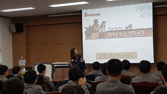 ¼Ò¹æ¼ °ü°èÀÚ´Â ¡°¹Ì·¡ÀÇ ¾ÈÀüÀ» À̲ø¾î°¥ ÁßÇлýµé¿¡°Ô ¼Ò¹æ°üÀ̶ó´Â Á÷¾÷À» ¼Ò°³ÇÔÀ¸·Î½á Çлýµé¿¡°Ô Áø·ÎŽ»öÀÇ ±âȸ¸¦ ÁÙ ¼ö ÀÖ¾î ±â»Ú´Ù¡±¸ç ¡°¾ÕÀ¸·Îµµ ÁßÇлýµéÀÌ Áñ±â¸é¼ ¾ÈÀüÀ» ¹è¿ï ¼ö ÀÖµµ·Ï üÇè½Ä À§ÁÖÀÇ ¹Ì·¡¼Ò¹æ°ü Á÷¾÷üÇè±³½ÇÀ» ¿î¿µÇϰڴ١±°í ÀüÇß´Ù.