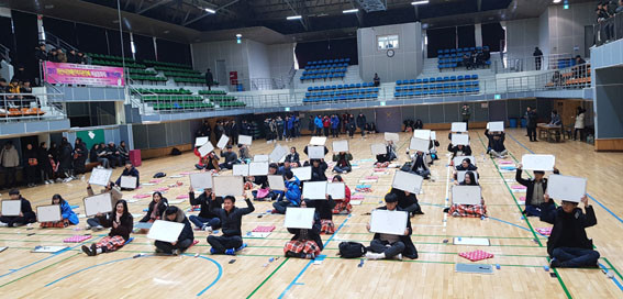 ¿¹ºñ»çȸÀÎÀÎ °íµîÇб³ 3Çгâ Çлý 94¸í°ú ÀÀ¿øÀ» À§ÇØ Âü¼®ÇÑ ±³¿ì¸¦ Æ÷ÇÔÇØ 130¿©¸íÀÌ Âü¼®ÇÑ À̹ø ÄûÁî´ëȸ´Â ¶ß°Å¿î ÀÀ¿ø°ú ¿¶í ºÐÀ§±â ¼Ó¿¡¼ Ä¡·¯Á³´Ù.