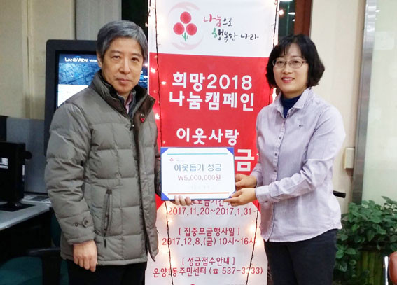 | | ¡è¡è ¡ãÀ̵¿¼ö ¿øÀåÀÌ ¼º±Ý³³ºÎ ÈÄ ±â³äÃÔ¿µÀ» Çϰí ÀÖ´Ù. (»çÁø ¿ÞÂʺÎÅÍ) À̵¿¼ö ¿øÀå, ±è¹Ì°æ ¿Â¾ç1µ¿ Áֹμ¾ÅÍ ÆÀÀå | ¨Ï ¿Â¾ç½Å¹® | | À̵¿¼öÄ¡°úÀÇ¿øÀÇ À̵¿¼ö ¿øÀåÀÌ Áö³ 12¿ù 14ÀÏ ¿Â¾ç1µ¿À» ¹æ¹®ÇØ Èñ¸Á 2018 ³ª´®Ä·ÆäÀΡ¯ ÀÌ¿ô»ç¶û ¼º±Ý 500¸¸ ¿øÀ» Àü´ÞÇß´Ù.