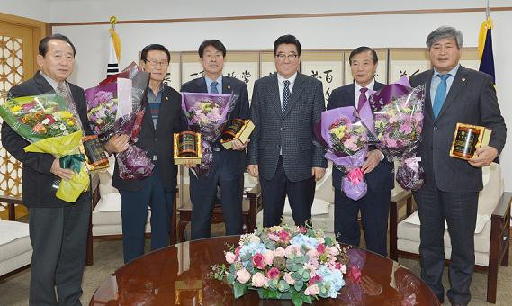 À±¼®¿ì ÀÇÀåÀº À̳¯ À̱âö ÀÇ¿ø(¾Æ»ê1), ¼Û´öºó ÀÇ¿ø(³í»ê1), À¯ÂùÁ¾ ÀÇ¿ø(ºÎ¿©1), ÀÌ¿ëÈ£ ÀÇ¿ø(´çÁø2) µî 4¸íÀÇ ÀÇ¿ø¿¡°Ô ǥâÆÐ¸¦ Àü´ÞÇß´Ù.