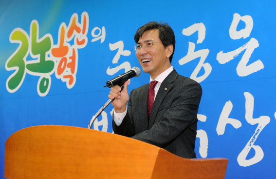 ÀÌ ÀÚ¸®¿¡¼ ¾ÈÈñÁ¤ Áö»ç´Â ¼ö»óÀڵ鿡 ´ëÇÑ ÃàÇÏÀÇ ¶æÀ» ÀüÇÑ µÚ ¡°¿ì¸®ÀÇ ³ó¾î¾÷Àº »ç¶÷ÀÇ »ý¸íÀ» À§ÇÑ Àηù ¿ª»ç»ó °¡Àå ¿À·¡µÈ »ê¾÷¡±À̶ó¸ç ¡°³ó¾î¾÷ÀÌ ´Ù¸¥ »ê¾÷¿¡ ºñÇØ ³Ê¹« µÚóÁöÁö ¾Êµµ·Ï Á¦°ªÀ» Àß ¹Þ°Ô ÇÏ°í °¢Á¾ ºñ¿ëÀ» ÁÙ¿© ä»ê¼ºÀ» ³ôÀÌ´Â ¹æ¹ýÀ» °í¹ÎÇÏ´Â ÇÑÆí, ³ó¾÷ÀçÁ¤ ±¸Á¶ Çõ½Å°ú ´õ ³ªÀº ´ëÇѹα¹ ³ó¾÷ Á¤Ã¥À» À§Çؼµµ Áö¼ÓÀûÀ¸·Î ³ë·ÂÇϰڴ١±°í ¸»Çß´Ù.