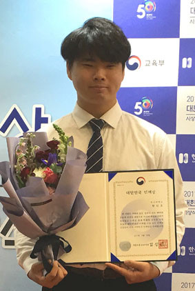 Ȳ¹ÎÈ£ ÇлýÀº ±× Áß ·Îº¿ºÐ¾ß¿¡¼ µÎ°¢À» ³ªÅ¸³» 4Â÷ »ê¾÷½Ã´ë¸¦ À̲ø¾î°¥ ¿ì¼öÇÑ Àç¿øÀ¸·Î ÀÎÁ¤¹Þ¾Ò°í, ¡®2017 ´ëÇѹα¹ ÀÎÀç»ó¡¯¿¡ ¼±Á¤µÅ ºÎÃѸ® °â ±³À°ºÎÀå°ü»ó°ú 250¸¸ ¿øÀÇ »ó±ÝÀ» ¼ö»óÇß´Ù.