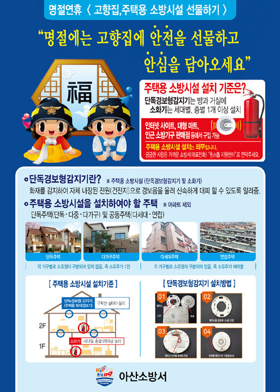 ¾Æ»ê¼Ò¹æ¼ °ü°èÀÚ´Â ¡°¼Òȱâ¿Í ´Üµ¶°æº¸Çü°¨Áö±â´Â ÁÖÅÃÈÀç ÇÇÇØ °æ°¨¿¡ Å« ¿ªÇÒÀ» ÇÑ´Ù¡±¸ç ¡°¼³ ¸íÀý¿¡ °íÇâ¿¡ °è½Å ºÎ¸ð´Ô²² ÁÖÅÃ¿ë ¼Ò¹æ½Ã¼³À» ¼±¹°ÇØ ÈÀç·ÎºÎÅÍ ¾ÈÀüÀ» Áöų ¼ö ÀÖ±æ ¹Ù¶õ´Ù¡±°í ÀüÇß´Ù.