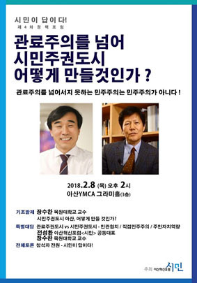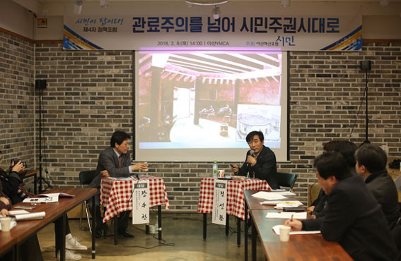 Àå¼öÂù ±³¼ö¿Í ¾Æ»êÇõ½ÅÆ÷·³ ¡®½Ã¹Î¡¯ Àü¼ºÈ¯ ´ëÇ¥´Â 2¿ù 8ÀÏ ¾Æ»êYMCA¿¡¼ ¿¸° ¡®½Ã¹ÎÀÌ ´äÀÌ´Ù! Á¦4Â÷ Á¤Ã¥Æ÷·³¡¯¿¡ Âü¼®ÇØ Æ¯º°´ë´ãÀ» °¡Á³´Ù. ÀÌ Á¤Ã¥Æ÷·³Àº Àü¼ºÈ¯ Àü ¼¿ï½Ã ´ë¿ÜÇù·Âº¸Á°üÀÌ °øµ¿´ëÇ¥·Î ÀÖ´Â ¾Æ»êÇõ½ÅÆ÷·³ ¡®½Ã¹Î¡¯ ÁÖÃÖ·Î ¿¸° Çà»ç´Ù.