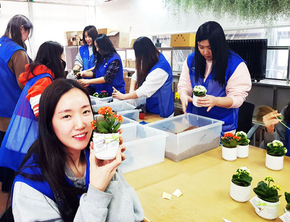 ¡®One Table One Flower¡¯ Ä·ÆäÀÎÀº ¸ÅÁÖ ¿ù¿äÀÏ Àå¾ÖÀεéÀÌ È¸»ç¸¦ Á÷Á¢ ã¾Æ Ⱥ´À̳ª ȺÐÀ» ÀÓÁ÷¿ø °³ÀΠå»ó¿¡ ºñÄ¡ÇÏ´Â Ä·ÆäÀÎÀ¸·Î ÀÓÁ÷¿øµéÀÇ Èú¸µ°ú ¹àÀº ȸ»çºÐÀ§±â¸¦ ¸¸µå´Âµ¥ Å« µµ¿òÀÌ µÆ´Ù.