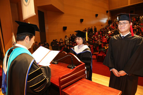 Ȳ¼±Á¶ ÃÑÀåÀº ¡°¿ì¸®´ëÇп¡¼ ¹è¿î ¼¶±è°ú ¹è·ÁÀÇ ¡®ÀΰÝÀÚ¡¯, ¼ÒÅë°ú ³ª´®ÀÇ ¡®¼¼°è½Ã¹Î¡¯, âÀÇ¿Í À¶ÇÕÀÇ ¡®Àü¹®ÀΡ¯ÀÇ 3´ë ±³À°¸ñÇ¥¸¦ ±íÀÌ »õ±â¸ç, ¼¼°è¸¦ ¹«´ë·Î ²ÞÀ» ÆîÄ¡´Â ÁÖÀΰøÀÌ µÇ±æ ¹Ù¶õ´Ù¡±°í Á¹¾÷»ýÀ» °Ý·ÁÇß´Ù.