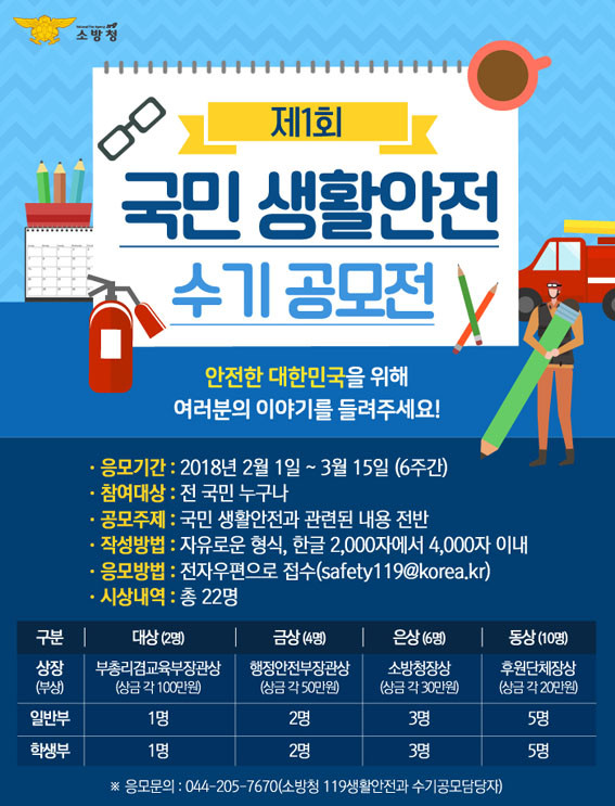 °ø¸ðÀü ½ÅûÀº Âü°¡½Åû¼¿Í ÀÀ¸ðÀÛǰÀ» ÇϳªÀÇ ÆÄÀÏ·Î ¸¸µé¾î À̸ÞÀÏ(safety119@korea.kr)·Î ½ÅûÇÏ¸é µÈ´Ù.
