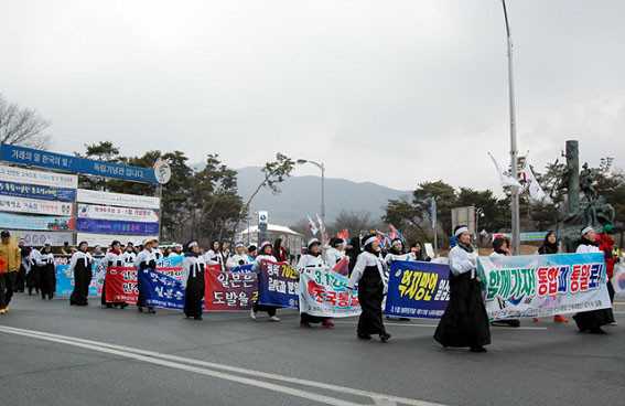 ÀÌ¾î ¿ÀÀü 10½Ã30ºÐºÎÅÍ´Â ´ëÇÑÀû½ÊÀÚ»çõ¾ÈÁö±¸ÇùÀÇȸ(ȸÀå ÀÌÈﱸ), õ¾Èµ¿³²±¸ÀÚÀ²¹æ¹ü¿¬ÇÕ´ë(´ëÀå ¹Ú¼º±Ç), ³ª¶ó»ç¶ûºÀ»ç´Ü(´ÜÀå ÀÓ¿µ¹¬), (»ç)3¡¤1¿©¼ºµ¿Áöȸõ¾È½ÃÁöȸ(ȸÀå ±èÁ¤¼ö) °¡ °øµ¿ÁÖ°üÀ¸·Î 3¡¤1Á¤½Å°è½ÂÀ» À§ÇÑ ³ª¶ó»ç¶ûÇѸ¶À½°È±â´ëȸ(±¹¹Î´ëÅëÇÕ ¸¸¼¼´ëÇàÁø)°¡ µ¶¸³±â³ä°ü °Ü·¹ÀÇÅ«¸¶´ç°ú µ¶¸³±â³ä°ü ¾Õ ¸ñõ³ªµé¸ñ 4.3Km ±¸°£¿¡¼ °Å¸® ÇàÁøÀ» ¹úÀδÙ.