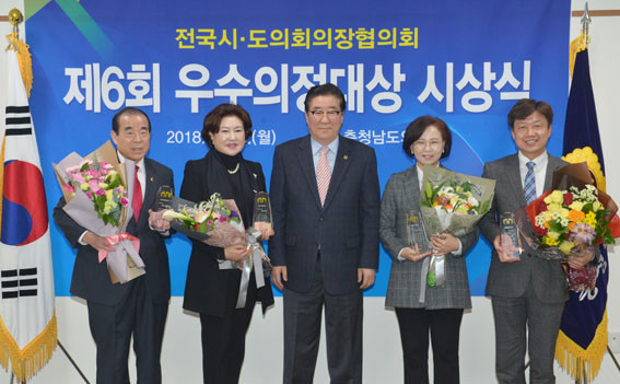 Ãæ³²µµÀÇȸ À±¼®¿ì ÀÇÀåÀº À̳¯ ÀÇÀå Á¢°ß½Ç¿¡¼ Áö¹æÀÇȸ ¹ßÀü°ú Áֹκ¹¸® Çâ»ó, Áö¿ª »çȸ ±â¿© °ø·Î¿¡ ¾ÕÀå¼± ÀÇ¿øµé¿¡°Ô ÀÌ °°Àº »óÀ» Àü´ÞÇß´Ù.