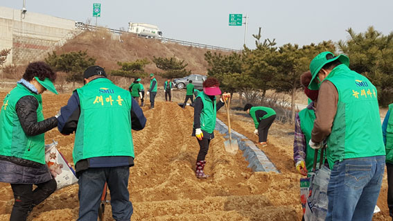À̳¯ Çà»ç¿¡´Â 17°³ À¾¡¤¸é¡¤µ¿ ȸÀåµéÀ» Æ÷ÇÔÇØ »õ¸¶À»³²¿©ÁöµµÀÚ 35¸íÀÌ Âü¼®ÇØ °¨ÀÚ½ÄÀ縦 µµ¿ÔÀ¸¸ç ½ÄÀç ÈÄ¿¡´Â 43¹ø±¹µµº¯¿¡¼ »õº½¸ÂÀÌ µµ·Îº¯´ëû¼Ò¸¦ ½Ç½ÃÇß´Ù.