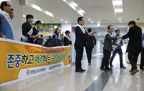 | | ¨Ï ¿Â¾ç½Å¹® | | Ãæ³²µµ°ø¹«¿ø³ëµ¿Á¶ÇÕ(À§¿øÀå ±èŽÅ, ÀÌÇÏ ³ëÁ¶)°ú Ãæ³²µµ ¿©¼º°¡Á·Á¤Ã¥°ü½ÇÀÌ °øÁ÷»çȸ ºÐÀ§±â ¼â½ÅÀ» À§ÇØ ¼ÕÀ» ¸ÂÀâ¾Ò´Ù.