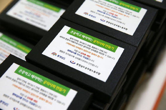 °æÃ¸Çü ¼Õ°Å¿ïÀº °øÁ÷ÀÚ ½º½º·Î Á¶Á÷À» µ¹¾Æº¸ÀÚ´Â Àǹ̷Î, ³»ºÎ¿¡ ¾ç¼ºÀÌ ÆòµîÇÑ Á¶Á÷¹®È Á¶¼ºÀ» ´ÙÁüÇÏ´Â ¹®±¸¸¦ »ðÀÔÇß´Ù.
