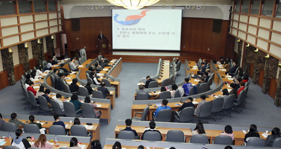 °³È¸½Ä¿¡¼ ÀÌÀ翵(¼±¹®´ë ºÎÃÑÀå) ÇÐȸÀåÀº ¡°Çѹݵµ¸¦ Áß½ÉÀ¸·Î ÈÇØ¿Í ÆòÈÀÇ »õ·Î¿î ¿òÁ÷ÀÓÀÌ °¨µµ´Â Áß¿äÇÑ ½Ã±â¿¡ ½ÃÀÇÀûÀýÇÑ ÁÖÁ¦·Î Åä·ÐÀÇ ÀåÀ» ¸¶·ÃÇÏ¿© ÀÇ¹Ì ±í´Ù¡±¸ç, ¡°Æ¯º°È÷ ¼±¹®´ë ¼³¸³ÀÚÀÎ ¹®¼±¸í¡¤ÇÑÇÐÀÚ ÃÑÀç²²¼ Çѹݵµ ÆòÈ¿Í ÅëÀÏÀ» À§ÇØ ±â¿©ÇϽŠ¹Ù Å©±â¿¡ ¾ÕÀ¸·Î ÀÌ·¯ÇÑ ¿¬±¸¿Í Åä·ÐÀÇ ÀåÀÌ ´õ¿í È®´ëµÇ±â ¹Ù¶õ´Ù.¡±°í ¸»Çß´Ù.