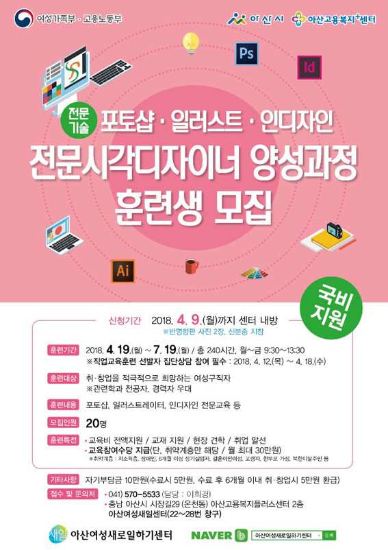 ¡®(Àü¹®±â¼ú)Æ÷Åä¼¥¡¤ÀÏ·¯½ºÆ®¡¤ÀεðÀÚÀÎ Àü¹®½Ã°¢µðÀÚÀÌ³Ê ¾ç¼º°úÁ¤¡¯Àº 4¿ù 9ÀϱîÁö ¾Æ»ê¿©¼º»õÀϼ¾ÅÍ(¾Æ»ê°í¿ëº¹ÁöÇ÷¯½º¼¾Åͳ» 2Ãþ, 22~27¹øÃ¢±¸)·Î ½ÅºÐÁõ, »çÁø 2¸Å ÁöÂüÇØ ¹æ¹® Á¢¼öÇϸç ÀÚ¼¼ÇÑ »çÇ×Àº 570-5533·Î ¹®ÀÇÇÏ¸é µÈ´Ù.