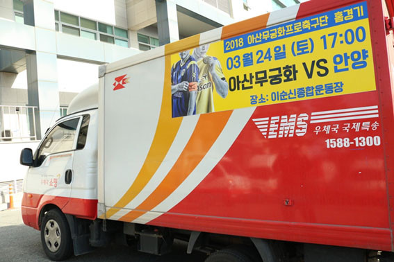 ¸ÕÀú ¿À´Â 3¿ù 24ÀÏ FC¾È¾ç°úÀÇ È¨°æ±âºÎÅÍ ÅÃ¹è ¹è¼ÛÀ» À§ÇØ °ü³» ±¸¼®¼ö¼®À» ´©ºñ´Â ¿ìü±¹ ÅùèÂ÷·®¿¡ ¾Æ»ê¹«±ÃÈÀÇ È¨°æ±â ÀϽð¡ ÷ºÎµÈ È«º¸ µµ¾ÈÀ» Á¦ÀÛ¡¤ºÎÂøÇØ ¾Æ»ê¹«±ÃÈÀÇ È¨°æ±â¸¦ Áö¿ª¹Îµé¿¡°Ô ³Î¸® ¾Ë¸± °èȹÀÌ´Ù.