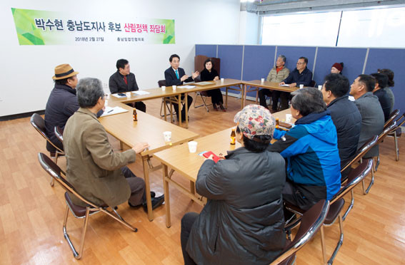 ¹Ú ¿¹ºñÈ帴 2¿ù 27ÀÏ Ãµ¾È ¼±°ÅÄ·ÇÁ »ç¹«¼Ò¿¡¼ Ãæ³²Áö¿ª ÀÓ¾÷ÀÎ, »ê¸² °æ¿µÀÎ µîÀÌ Âü¼®ÇÑ °¡¿îµ¥ ¡®»ê¸²Á¤Ã¥ Á´ãȸ¡¯¸¦ °®°í À̰°ÀÌ ¸»Çß´Ù.