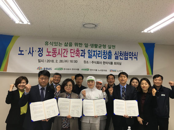 | | ¡è¡è ¡ãÁö³´Þ 28ÀÏ ³í»ê Çѹ̽Äǰ ȸÀǽǿ¡¼ ½Åµ¿Çå µµ °æÁ¦Åë»ó½ÇÀå, Çѹ̿µ Çѹ̽Äǰ ´ëÇ¥ÀÌ»ç, Àü¹ÎÇÑ Çѹ̽Äǰ ³ë»çÇùÀÇȸ ±Ù·ÎÀÚ ´ëÇ¥, ÀÌÁ¾À¯ ³í»ê½Ã »çȸÀû°æÁ¦°úÀå(¿ÞÂÊ ºÎÅÍ) µîÀÌ ¡®³ë¡¤»ç¡¤Á¤ ³ëµ¿½Ã°£ ´ÜÃà°ú ÀÏÀÚ¸® âÃâ ½ÇõÇù¾à¡¯À» ü°áÇÑ µÚ ±â³ä»çÁøÀ» Âï°í ÀÖ´Ù. | ¨Ï ¿Â¾ç½Å¹® | | Ãæ³²µµ°¡ ÁßÁ¡ ÃßÁø ÁßÀÎ ¡®³ëµ¿½Ã°£ ´ÜÃàÀ» ÅëÇÑ ÀÏÀÚ¸® âÃ⡯ »ç¾÷ÀÌ Ã¹ °á½ÇÀ» ¸Î¾ú´Ù.