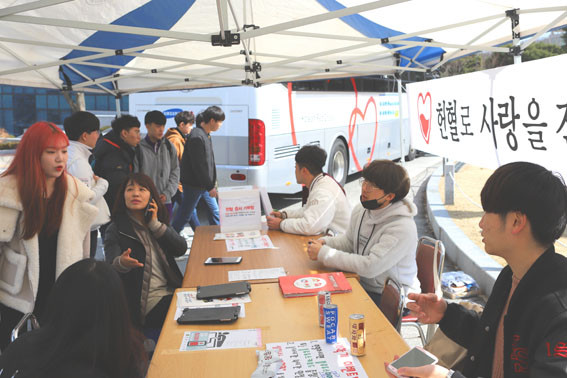ÃÑÇлýȸ´Â ÇåÇ÷È«º¸¿Í µ¿½Ã¿¡ Ç÷¾×°Ç°¿¡ °üÇÑ °úÇÐÀû Áö½Äµµ Àü´ÞÇÏ´Â µî ´Ùä·Î¿î ¸ð½ÀÀ¸·Î Ä·ÆäÀÎÀ» ÁøÇàÇß´Ù. ÀçÇлýµéÀº äÇ÷º£µå°¡ ºÎÁ·ÇÒ Á¤µµ·Î ÁÙÁö¾î µ¿ÂüÇß°í ÀÚ¹ßÀûÀ¸·Î ÇåÇ÷Áõ¼¸¦ ±âºÎÇØ Àû½ÊÀÚ»ç °ü°èÀÚµµ ³î¶ó¿òÀ» °¨ÃßÁö ¸øÇß´Ù.