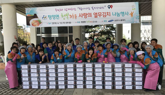 ÇູŰ¿ò ´Ü¿ø 30¿©¸í, »ï¼ºµð½ºÇ÷¹ÀÌ ºÀ»ç´Ü 25¿©¸íÀÌ Âü¿©ÇØ À̸¥ ¿ÀÀüºÎÅÍ ±¸½½¶¡À» È긮¸ç Á¤¼ºÀ¸·Î ¿¹«±èÄ¡¸¦ ¸¸µé¾î °ü³» ¼ö±ÞÀÚ ¹× Â÷»óÀ§°èÃþ, Àå¾ÖÀÎ °¡±¸ 120¼¼´ë¿¡ ÇູŰ¿òÃßÁø´Ü¿ø°ú º¹ÁöÀÌÀåÀÌ ¹æ¹® Àü´ÞÇß´Ù.