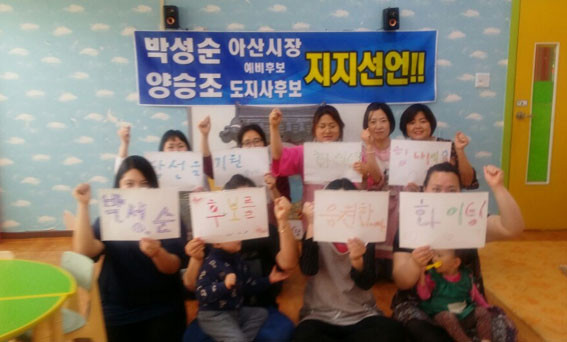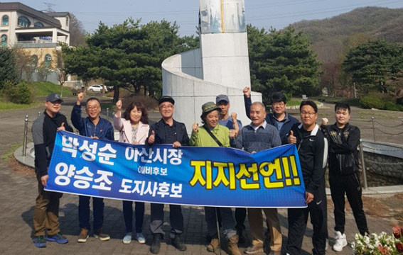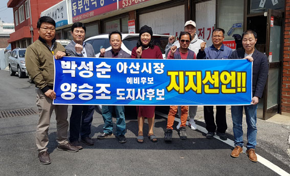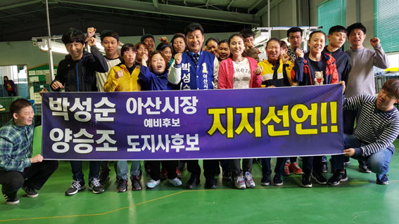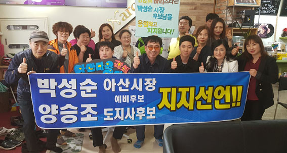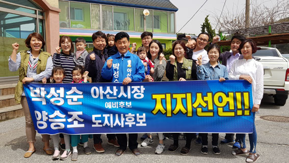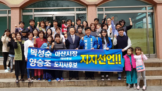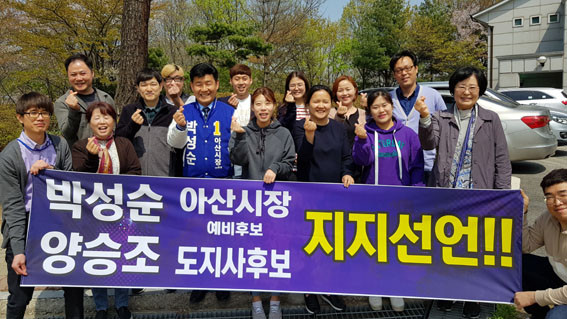 ÀÌ Ä·ÇÁ¿¡¼´Â ¡®¾ç½ÂÁ¶ µµÁö»ç Èĺ¸, ¹Ú¼º¼ø ¾Æ»ê½ÃÀå ¿¹ºñÈĺ¸ ÁöÁö¼±¾ð¡¯À̶õ Çö¼ö¸·°ú ÇÔ²² Á÷Á¢ ÀÀ¿øÀÇ ¸Þ½ÃÁö¸¦ Àü´ÞÇϸç ÁöÁö¼±¾ðÀ» Çϰí ÀÖ´Â ¾Æ»ê½Ã¹ÎµéÀº ¹Ú ¿¹ºñÈĺ¸ÀÇ °íÇâÀÎ À½ºÀ¸é¹ÎµéÀ» ºñ·ÔÇØ ¾Æ»ê¿¡¼ ÀÏÇÏ´Â »çȸº¹Áö»çµé, ¹Ù¸®½ºÅ¸ µ¿È£È¸¿ø, ¹è¹æÀ¾ ȯ°æ¹ÌÈ¿øµé, ¾Æ»ê¿Âõ¹ßÀüÇùÀÇȸ¿ø, °Ç¼³Àε¿È£È¸¿ø, ¿¸°Á¤º¸Àå¾ÖÀÎÇùȸ¿ø, ÁöÁ¦Àå¾ÖÀÎÀÛ¾÷Àå ±Ù·ÎÀÚµé µîÀ̶ó°í ¹àÇû´Ù.