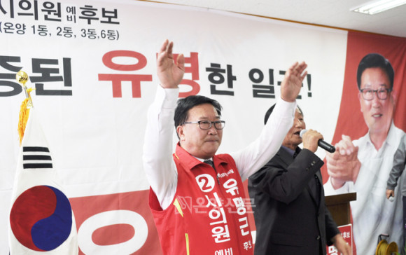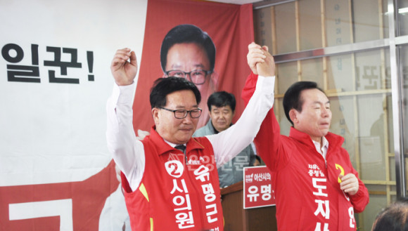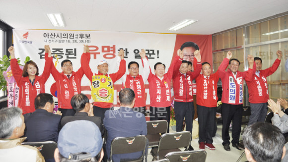 20ÀÏ °³¼Ò½Ä¿¡´Â ÀÚÀ¯Çѱ¹´ç ÀÌÀÎÁ¦ Ãæ³²µµÁö»ç Èĺ¸, À̸í¼ö ±¹È¸ÀÇ¿øÀ» ºñ·ÔÇØ 6.13 Áö¹æ¼±°Å¿¡ Ã⸶ÇÏ´Â ÀÚÀ¯Çѱ¹´ç ¾Æ»ê½ÃÀ塤µµ¡¤½ÃÀÇ¿ø ¿¹ºñÈĺ¸, ´ç¿ø, ÁöÁöÀÚ µîÀÌ Âü¼®ÇÏ¿© Àç¼±¿¡ µµÀüÇÏ´Â À¯¸í±Ù ¿¹ºñÈĺ¸¿¡°Ô ¶ß°Å¿î °Ý·Á·Î ÈûÀ» ½Ç¾îÁá´Ù.