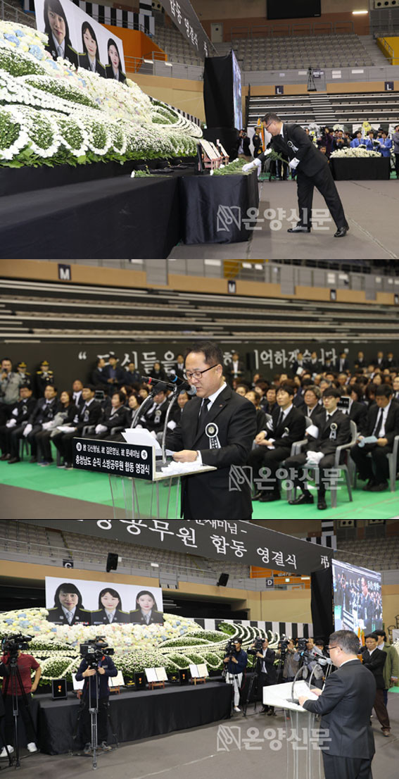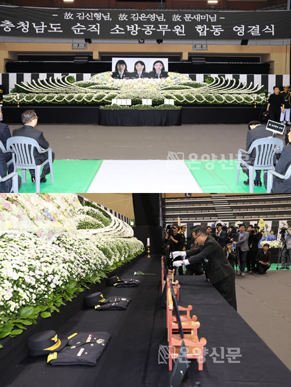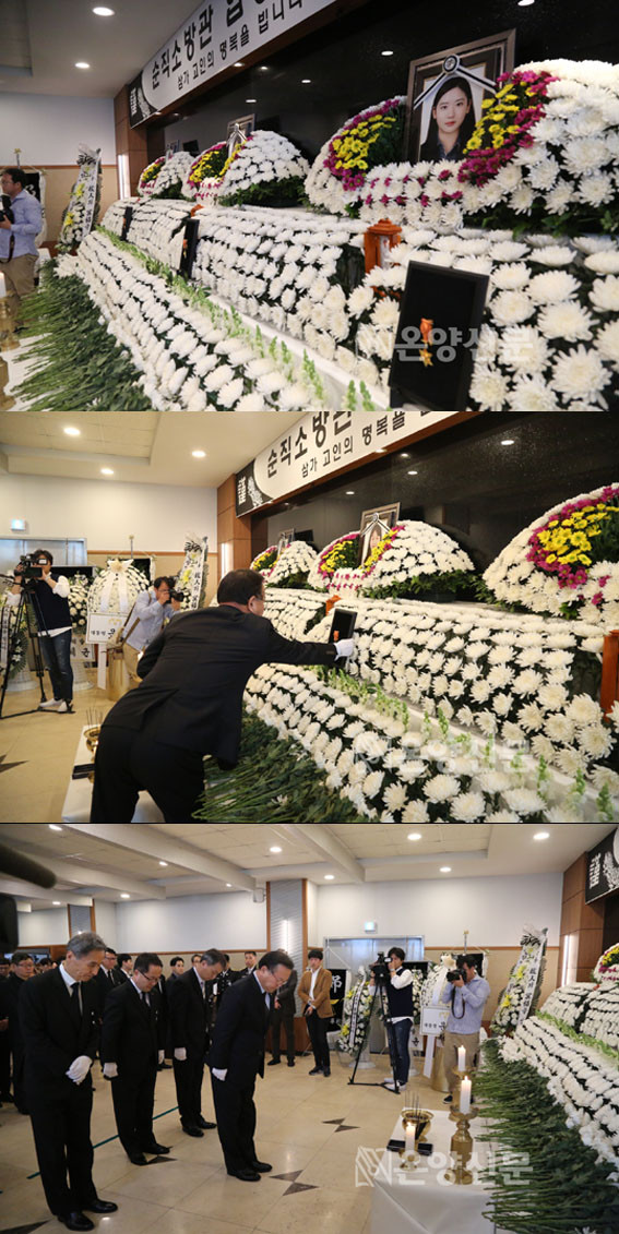 À̳¯ ³²±Ã¿µ Ãæ³²µµÁö»ç ±ÇÇÑ´ëÇàÀº ¿µ°á»ç¿¡¼ ¡°¿À´Ã ¿ì¸®´Â ¾Æ¸§´ä°í ¼þ°íÇÑ »îÀ» »ì´Ù °¡½Å ͺ ±è½ÅÇü ¼Ò¹æÀå´Ô°ú ¹®»õ¹Ì¡¤±èÀº¿µ ´ÔÀ» ¶°³ªº¸³»±â À§ÇØ ¸ð¿´´Ù¡±¸ç Ã߸ðÇϰí, À̵éÀÇ À̸§À» ÀÏÀÏÀÌ °Å¸íÇÑ µÚ ¡°´ÔµéÀº »ç¶ûÇÏ´Â À̵éÀ» À̰÷¿¡ ³²°ÜµÎ°í ±× ªÀº »ýÀ» ¸¶ÃÆ´Ù. Ȥ¿© »ç¶÷µéÀÌ ´ÙÄ¡Áö´Â ¾ÊÀ»±îÇϴ åÀÓ°¨°ú Çå½ÅÀ¸·Î ÀÚ½ÅÀÇ ¿Â »îÀ» ¹ÙÃÆ´Ù. ¸öÁ¶Â÷ °¡´©Áö ¸øÇÒ ½½ÇÄ¿¡ ºüÁø °¡Á·°ú µ¿·áµéÀ» ³²°ÜµÎ°í ¾îÂî ÀÌ·¸°Ô ¶°³ª°¡¼Å¾ß¸¸ Çß³ª. ÁøÁ¤ ´ç½ÅµéÀÌ ³»¹Ð¾ú´ø ±× »ç¶ûÀÇ ¼Õ±æÀ» ´Ù½Ã´Â º¼ ¼ö ¾ø´Â °ÍÀΰ¡? ³Ê¹«µµ Å« ½½ÇÄ¿¡ Áö±Ý ÀÌ ¼ø°£ÀÌ Çö½ÇÀÌ ¾Æ´Ñ °Í¸¸ °°´Ù. ÀÌ·¸°Ô ´ÔµéÀ» ¶°³ªº¸³»¾ß¸¸ ÇÏ´Â ÀÌ ½Ã°£ÀÌ ³Ê¹«µµ ¾Æ½±°í ¾ß¼ÓÇÒ µû¸§¡±À̶ó°í ºñÅëÇØ Çß´Ù.