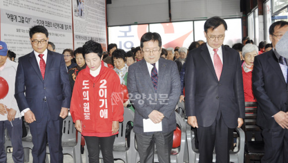 | | ¡è¡è À̱â¾Ö(57¡¤ÀÚÀ¯Çѱ¹´ç) Ãæ³²µµÀÇ¿ø ¾Æ»ê Á¦1¼±°Å±¸(¼±Àå, µµ°í, ½Åâ, ¿Â¾ç4¡¤5µ¿) ¿¹ºñÈ帰¡ 4ÀÏ ¼±°Å»ç¹«¼Ò( ¾Æ»ê½Ã ¿Âõ´ë·Î ¼ÒÀç) °³¼Ò½ÄÀ» °¡Á³´Ù. | ¨Ï ¿Â¾ç½Å¹® | |