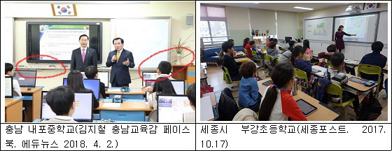 Á¶ ¿¹ºñÈ帴 ÃÖ±Ù ±è»ó°ï ±³À°ºÎÀå°ü°ú ±èÁöö ±³À°°¨ÀÌ ¹æ¹®ÇÑ ³»Æ÷ÁßÇб³ÀÇ µðÁöÅб³À° ½ÇŸ¦ ±³À°ºÎȨÆäÀÌÁö ¹× ¾ð·Ð»ç¿¡ ¹èÆ÷µÈ »çÁøÀ» ±Ù°Å·Î Á¦½ÃÇϸç, °¡»óÇö½Ç¡¤Áõ°Çö½ÇÀÌ ÇÙ½ÉÀÎ µðÁöÅб³°ú¼´Â ´Ü¼øÇÑ ÀüÀÚÃ¥¿¡ ºÒ°úÇϰí, ´ÜÁ¾µÈ ÄÄÇ»ÅÍ·Î ¼ÒÇÁÆ®¿þ¾î±³À°ÀÌ »ç¿ëµÇ´Â µî È¥¶õÇö½ÇÀ» ÆÑÆ® üũ(fact check) ÀÚ·á·Î¼ Á¦½ÃÇß´Ù.