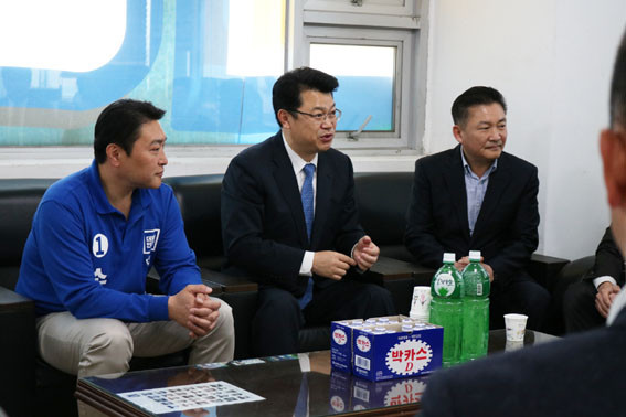 º¹±â¿Õ ¿¹ºñÈ帴 ´çÁø Áö¿ª Ã⸶ÀÚ¿Í ´ç¿øµéÀ» ¸¸³ª ¡°6.13 Áö¹æ¼±°Å¿¡¼ Ãæ³² ¹ÎÁÖ´çÀÇ ½Â¸®¿Í ¹®ÀçÀÎ Á¤ºÎÀÇ ¼º°øÀ» À§ÇØ ¹Ýµå½Ã ÀÌ°Ü¾ß ÇÑ´Ù¡±¸ç ¡°Àú¸¦ ¼¼¿öÁÖ¸é ´ç¿ø µ¿Áöµé°ú ÇÔ²² ¹Ýµå½Ã ½Â¸®Çϰڴ١±°í °Á¶Çß´Ù.