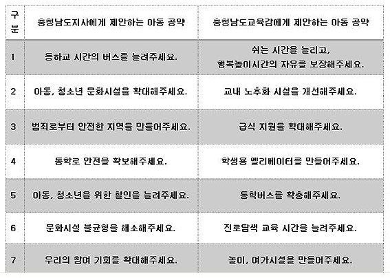 Åä·Ðȸ¿Í ¼³¹®Á¶»ç¸¦ ÅëÇØ Ãæ³²ÀÇ ¾Æµ¿µéÀÌ ¹Ý¿µµÇ±æ ¿øÇÏ´Â Á¤Ã¥µéÀ» Á÷Á¢ Á¦¾È ÁßÀ̸ç, ÇöÀç±îÁö(4¿ù10ÀÏ ±âÁØ) 723°³ÀÇ ÀǰßÀÌ Á¢¼öµÇ°í ÀÖ´Ù.
