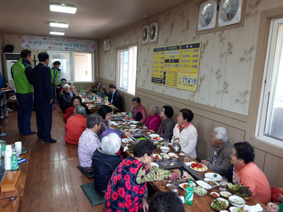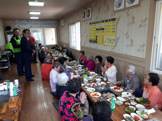 ÀÓµ¿Èñ ´ÜÀåÀº ¡°²ÉÀÌ ÇÇ´Â 4¿ù ¾î¸£½ÅµéÀ» Çѵ¥¸ð¾Æ ÀÌ·¸°Ô Á¡½É½Ä»ç´ëÁ¢À» ÇÏ´Ï ³Ê¹« ±âºÐÀÌ ÁÁ´Ù. °ü³» µ¶°Å¾î¸£½ÅµéÀ» ¿ì¸®°¡ ´õ¿í °ü½ÉÀ» °¡Á®¾ß °Ú´Ù. ¶Ç À̹ø ¼¶±è ÀÜÄ¡¿¡¼ ½Ä»çÀÚ¸®¸¦ ¸¶·ÃÇØ ÁØ °Ã»°ñ°¡µç°ú ¾î¸£½ÅµéÀÇ ¼±¹°À» ÁغñÇØÁØ ¹æÇö¸® ¼ÒÀçÀÇ ÃµÇϼ³ºñ(»çÀå ±èÁø¿Ï)¿¡ ³Ê¹« °í¸¿´Ù. ¾ÕÀ¸·Îµµ Ãë¾à°èÃþ ¹ß±¼ ¹× ¾î·Á¿î ÀÌ¿ôÀ» µ¹º¸´Âµ¥ Èû¾²°Ú´Ù¡±°í ¸»Çß´Ù.