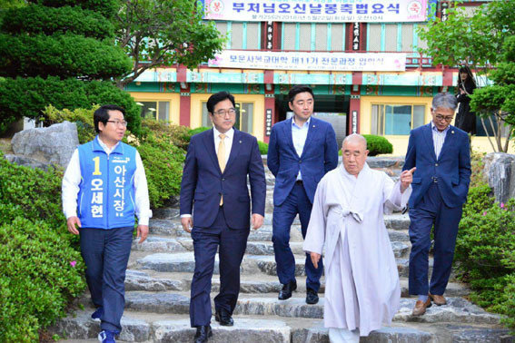 ¿À´Â 22ÀÏ ºÎó´Ô¿À½Å³¯À» ¾ÕµÎ°í ¿À¼¼Çö ¾Æ»ê½ÃÀå Èĺ¸¿Í ¿ì¿ø½Ä Àü ¿ø³»´ëÇ¥´Â À̳¯ º¸¹®»ç¸¦ ¹æ¹®ÇØ ¼Û¿î ½º´Ô(»ç¾Ï¿¬ÇÕȸ ȸÀå)°ú ºÒ±³°è ¹× Á¤±¹ Çö¾È¿¡ ´ëÇÑ ÀǰßÀ» ³ª´³´Ù.