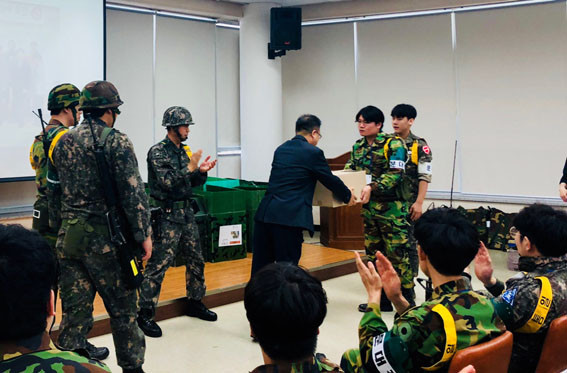 | | ¡è¡è ¡ã¿Â¾ç3µ¿ ¹æÀ§ÇùÀÇȸ(ȸÀå ±èÇü°ü)°¡ ¿¹ºñ±º¿¡°Ô °£½ÄÀ» Àü´ÞÇϰí ÀÖ´Ù. | ¨Ï ¿Â¾ç½Å¹® | | ¾Æ»ê½Ã ¿Â¾ç3µ¿ ¹æÀ§ÇùÀÇȸ(ȸÀå ±èÇü°ü)°¡ 4¿ù 30ÀÏ, 5¿ù 2ÀÏ ¹× 5¿ù 3ÀÏ 3ÀÏ ½Ç½ÃµÇ´Â¡®2018³â Àü¹Ý±â Çâ¹æÀÛ°èÈÆ·Ã¡¯¿¡ Âü¿©ÇÏ´Â ¿¹ºñ±ºÀ» À§ÇÑ »§, À½·á µî 300ÀκÐÀÇ °£½ÄÀ» Àü´ÞÇß´Ù.