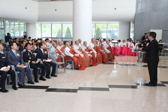 À¯ÀÍȯ ÀÇÀåÀº ¡°¿ì¸® ¸ðµÎÀÇ ¸¶À½¿¡ ÀÚºñÀÇ µîºÒÀ» ¹àÈûÀ¸·Î½á, ¾î·Æ°í ¼Ò¿ÜµÈ ÀÌ¿ôÀ» º¸µë¾î°¡´Â ÈÆÈÆÇÑ »çȸ¸¦ ¸¸µé°í, ÈÇÕ°ú »ó»ýÀÇ Á¤½ÅÀ» ½ÇõÇÏÀÚ¡±°í °Á¶Çß´Ù.
