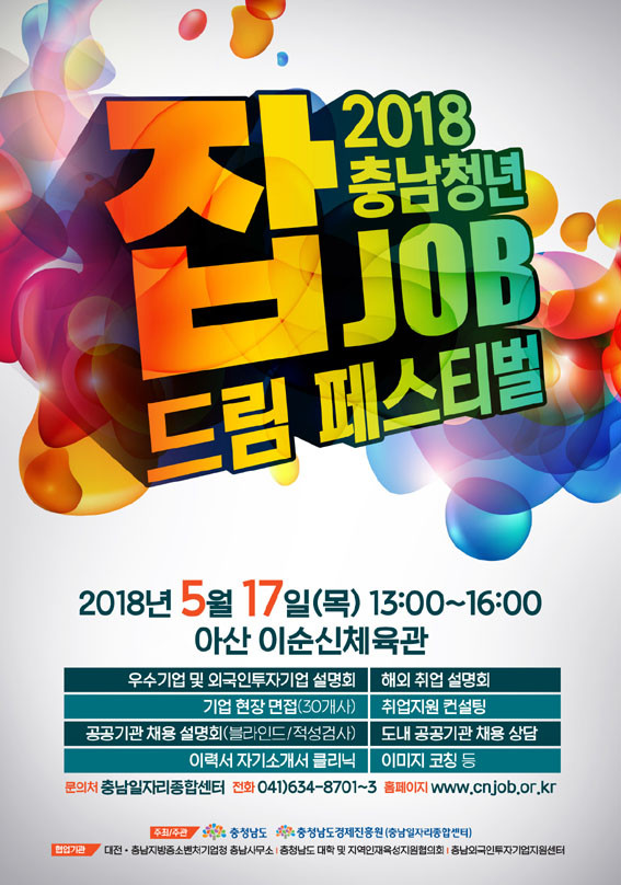 Ãæ³²µµ°¡ µµ³» û³â ±¸Á÷ÀÚ¿Í ¿ì¼ö¡¤°¼Ò±â¾÷ÀÇ ¸¸³²ÀÇ ÀåÀ» Æí´Ù. µµ´Â ¿À´Â 5¿ù 17ÀÏ ¾Æ»ê À̼ø½ÅüÀ°°ü¿¡¼ ¡®Ãæ³² û³â Àâ(JOB) µå¸² Æä½ºÆ¼¹ú¡¯À» °³ÃÖÇÑ´Ù°í ¹àÇû´Ù.