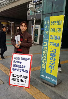 ¼±¾ð¿¡ Âü°¡ÇÑ ÀÓ´ëºÀ(¿Â¾çÃÊ) ±³»ç´Â ¡°ÆòÁØÈ´Â Áøº¸¿Í º¸¼öÀÇ ³í¸®¸¦ ³Ñ¾î¼´Â ÀÏÀ̸ç, ÀϺΠÁö¿ªÀ̳ª °³º° Çб³ ¸¸ÀÇ ÀÌÇØ°ü°è·Î ÆòÁØÈ¸¦ ¹Ý´ëÇÏ´Â °ÍÀº ÇлýµéÀÇ ÇູÇÑ ÇнÀ±ÇÀ» ¹æÇØÇÒ »Ó¸¸ ¾Æ´Ï¶ó ¾Æ»ê½Ã ÀüüÀÇ ÈÇÕ°úµµ ´ëÄ¡µÈ´Ù¡±¸é¼ ¡°ÀÔ½ÃÁ¦µµ ¶§¹®¿¡ ÇлýµéÀÇ °³¼º ¹× âÀǼº ±×¸®°í Çùµ¿½É°ú °ÇÀüÇÑ µµ´öÀǽÄÀÇ ÇÔ¾çÀ» ±×¸£Ä¡Áö ¾Êµµ·Ï ¿ì¸® ±³»çµéÀº ÃÖ¼±À» ´ÙÇØ¾ß ÇÒ °Í¡±À̶ó°í ÁöÀûÇß´Ù.