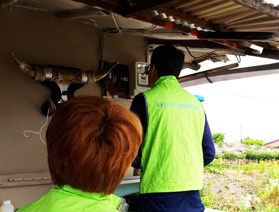 ¾Æ»ê½Ã½Ã¼³°ü¸®°ø´Ü Á÷¿øÀ¸·Î ±¸¼ºµÈ ºÀ»çÀÚµéÀÌ ¿Â¾ç4µ¿ÀÇ Àú¼Òµæ °¡Á¤ Áß ³ëÈÄµÈ ÁÖÅÿ¡ °ÅÁÖÇÏ´Â 2°¡±¸¸¦ ¹æ¹®ÇØ Àü±â¾ÈÀüÁ¡°Ë ½Ç½Ã, Àü±â¼± Á¤¸®, Äܼ¾Æ® ¹× Ç÷¯±×¸¦ ±³Ã¼ÇÏ´Â µî ¾ÈÀüÇÑ ÁÖ°Åȯ°æ¿¡¼ »ýȰÇÒ ¼ö ÀÖµµ·Ï Á¶Ä¡Çß´Ù.