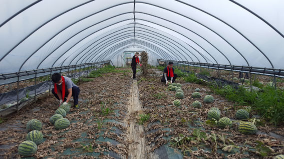 µµ ³óÁ¤±¹ ¼Ò¼ÓÁ÷¿ø 40¿© ¸íÀº 12ÀÏ ºÎ¿©±º ±Ô¾Ï¸é ¼ÒÀç ¼ö¹ÚÀç¹è ³ó°¡¸¦ ã¾Æ ħ¼ö·Î °í»çÇÑ ¼ö¹Ú ³ÕÄð ¹× °úÀÏ Á¤¸® ÀÛ¾÷À» µµ¿ì¸ç ±¸½½¶¡À» Èê·È´Ù.