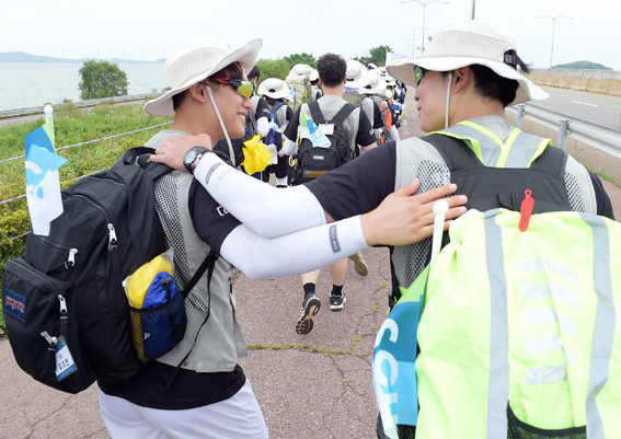 Áö³ 9ÀÏ ´ëÇÐºÎ¼Ó ºÎõº´¿ø¿¡¼ ȯ¿ìµéÀ» À§ÇÑ ºÀ»ç·Î ½ÃÀÛÇØ 50Km¸¦ Áö³ª´Â ±¸°£ÀÎ ¡®´ëºÎµµ¡¯ ÇØ¼ö¿åÀå¿¡¼´Â ±Ý¿¬Ä·ÆäÀÎÀ» ÆîÄ£´Ù.