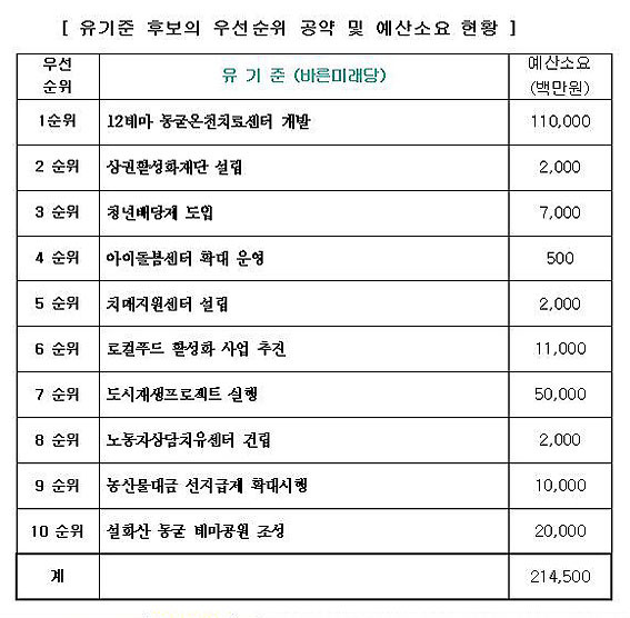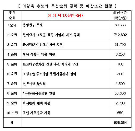 | | ¨Ï ¿Â¾ç½Å¹® | | À¯±âÁØ Èĺ¸ÀÇ ¿ì¼±¼øÀ§ 10´ë °ø¾à ÃßÁøÀ» À§Çؼ´Â ¡®12Å׸¶ µ¿±¼¿Âõġ·á¼¾ÅÍ °³¹ß¡¯ °ø¾à¿¡ 1õ100¾ï ¿ø, ¡®µµ½ÃÀç»ýÇÁ·ÎÁ§Æ® ½ÇÇ࡯ °ø¾à¿¡ 500¾ï ¿ø µî ÃÑ 2õ145¾ï ¿øÀÇ ¿¹»êÀÌ ¼Ò¿äµÉ °ÍÀ¸·Î Ãß»êÇß´Ù.