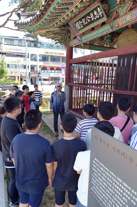 ÀÌ ³¯ Âü°¡ÇлýµéÀ» ÀμÖÇÑ ÃÖ¿µ¿î ¾Æ»êÁßÇб³ ±³»ç´Â ¡°¿ì¸®Áö¿ªÀÇ ¿ª»çÀû ±¸±¹ Àι°¿¡ ´ëÇØ ÇлýµéÀÌ ¹Ù·Î¾Ë°í ´à¾Æ°¡°Ô ÇÏÀÚ´Â ÃëÁö¿¡¼ Âü°¡Çß´Ù¡±¸ç ¡°Æò¼Ò¿¡ Áö³ªÃÆ´ø ¿Â¾ç¿Âõ¿ª ¾Õ¿¡ À§Ä¡ÇÑ ÀÌÃæ¹«°ø»çÀûºñ¿¡ ´ëÇØ¼ ÀÚ¼¼ÇÑ ¼³¸íÀ» µè°í ±× ³»¿ëÀ» ÅëÇØ À̼ø½ÅÀ屺À» ÀÚ¼¼È÷ ¾Ë°ÔµÅ ÇлýµéÀÌ »õ·Î¿î ÀںνÉÀ» °®°ÔµÈ °è±â°¡ µÆ´Ù¡±°í ¸»Çß´Ù.