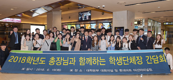 ¾Õ¼ ´ëÇÐÀÇ ¼º°ú¿Í ÃÖ±Ù ÇöȲÀ» µé·ÁÁÖ´Â ±³³» °£´ãȸ¿¡¼ ¼±³ÀÏ ÃÑÀåÀº ÇлýµéÀ» ¸ÂÀÌÇÏ¸ç ¡°ÃÑÇлýȸ¿Í ÁýÇàºÎ Çлýµé ±×¸®°í ÀÚÄ¡´ÜüÀå ¿©·¯ºÐµéÀÌ ¼ö°í ¸¹¾Ò´Âµ¥ Á¤¸» ¹Ý°©°í ȯ¿µÇÑ´Ù¡±¸ç ¡°1Çб⵿¾È Çлý´ëÇ¥µé¿¡°Ô Çб³¿¡¼ ÀÏ¾î³ ¿©·¯ °¡Áö Àϵ鿡 ´ëÇØ °£´ÜÇÑ ºê¸®Çΰú Çǵå¹é ½Ã°£À» °¡Áö°í, ¸ÀÀÖ´Â °Íµµ ¸ÔÀ¸¸ç Æí¾ÈÇÑ ºÐÀ§±â¿¡¼ ¼ÒÅëÇÏ´Â ½Ã°£À» °¡Á³À¸¸é ÇÑ´Ù¡±°í ¹Ý°å´Ù.