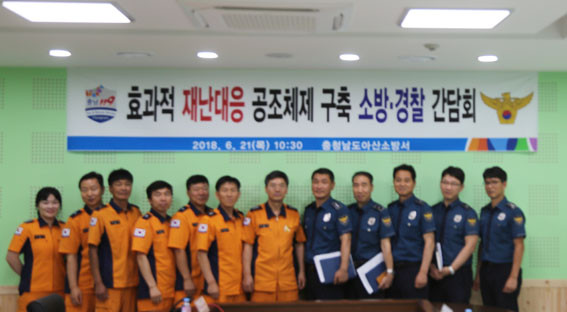 ¾Æ»ê¼Ò¹æ¼ ÇöÀå´ëÀÀ´ÜÀå, ¾Æ»ê°æÂû¼ 112Á¾ÇÕ»óȲ½ÇÀå µî °ü°èÀÚ°¡ Âü¼®ÇÑ À̳¯ °£´ãȸ´Â Àç³ ÇöÀå¿¡¼ °æÂû°ú ¼Ò¹æÀÌ È¿°úÀûÀ¸·Î ´ëÀÀÇϱâ À§ÇÑ Çù·Â´ë»óºÐ¾ß¸¦ ¼±Á¤Çϰí, À̸¦ ¹ÙÅÁÀ¸·Î ¾ç ±â°üÀÌ »óÈ£ ´Ù°¢ÀûÀÎ Çù·Â ¹æ¾ÈÀ» ¸ð»öÇØ ³ª°¡±â·Î ¾à¼ÓÇß´Ù.