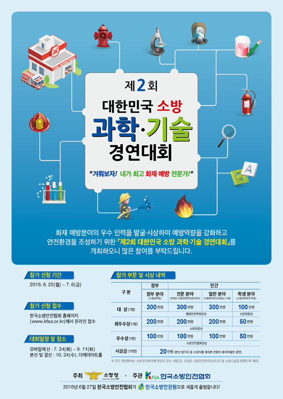 ¼Ò¹æÃ»ÀÌ ÁÖÃÖÇϰí Çѱ¹¼Ò¹æ¾ÈÀüÇùȸ°¡ ÁÖ°üÇÑ À̹ø ´ëȸ´Â ¿À´Â 7¿ùºÎÅÍ 10¿ù±îÁö ¿¹¼±¡¤º»¼± ¡¤°á¼± ¼øÀ¸·Î ÁøÇàµÇ¸ç, Âü°¡ºÎ¹®Àº Á¤ºÎ(¼Ò¹æ°ø¹«¿ø)¿Í ¹Î°£(Àü¹®, ÀϹÝ, Çлý)À¸·Î ±¸ºÐµÈ´Ù.